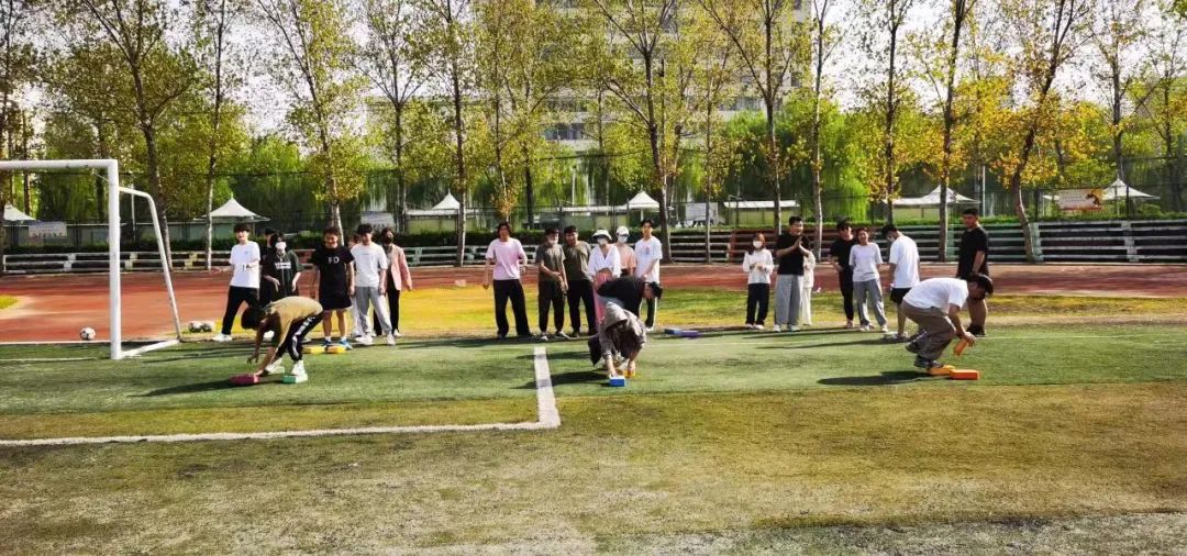 为引导学生走下网络、走出宿舍、走向操场,激发大学生参加体育锻炼的主观能动性,营造健康文明的校园文化氛围,缓解疫情期间学生的焦虑情绪,培养大学生体育锻炼的良好习惯,丰富学生的校园文化生活,4月7日,艺体学部2019级环境设计和服装设计专业的同学在辅导员李善爽老师的带领下,在运动场组织开展系列趣味文体活动,丰富防疫期间学生的课余文化生活。