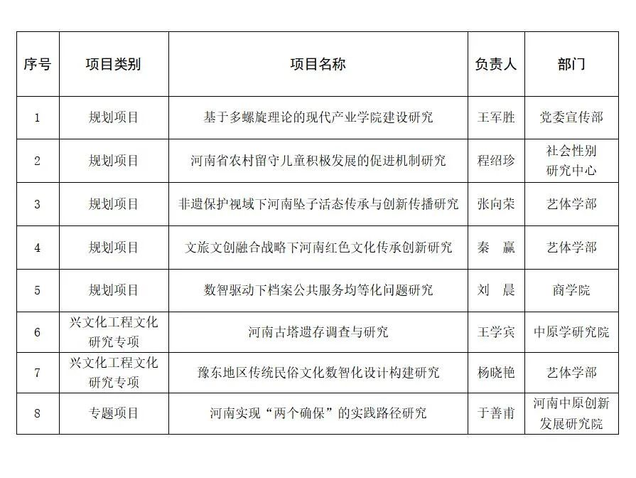 近日,河南省哲学社会科学规划办公室公布了2022年河南省哲学社会科学研究项目立项结果,365官网获准立项8项,其中规划项目5项,兴文化工程文化研究专项项目2项,专题项目1项。此次省哲学社会科学研究项目立项数量创学校历史新高。