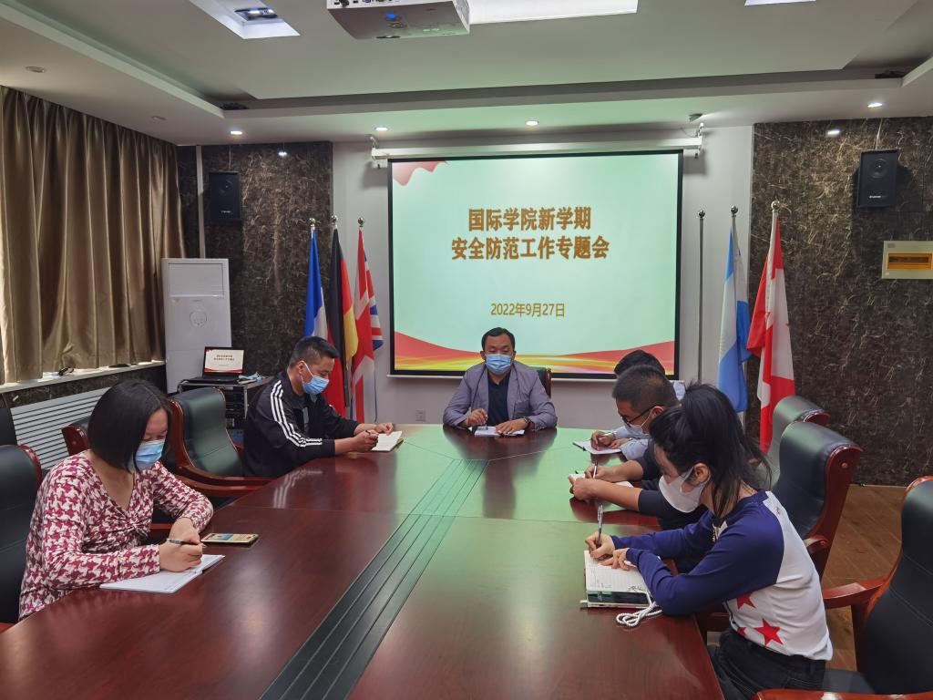 9月27日,国际学院召开安全防范工作专题会,学院分党委副书记郭建伟和相关部门负责人参加会议。
