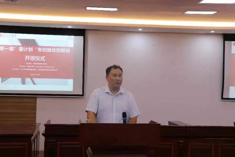 创新创业学院院长王文亮,对外合作办公室、大学生科技园管委会负责人张晓兵,教务科研处副处长李海霞,学生工作处就业办公室主任王国宾,商学院副院长孙常辉,河南中原创新发展研究院副院长于善甫等出席开班仪式。创新创业学院副院长张红玉主持,创新创业学院专职教师,首批专创融合创新创业工作室教师和“星计划”专创融合创新班学员参与此次开班仪式。