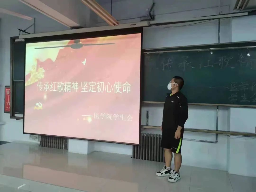 医学院组织开展“缅怀先烈志 共铸中华魂”主题观影活动,学生们一起观看了《特级英雄黄继光》等红色影片,接受了一次革命传统精神的洗礼。学生王玲说,在这部影片中,黄继光为守卫祖国河山彰显出的自我牺牲精神深深感染着我。正是这种强烈的爱国情怀,让中华民族的儿女有了与侵略者对抗的底气。硝烟已消散,但砥砺人心的“英烈精神”不会湮灭在如烟的岁月里。我们应当居安思危,弘扬伟大革命精神,为祖国的繁荣富强贡献力量。 医学院学生会还举办了“传承红歌精神,坚定初心使命”唱红歌活动。现场,学生们嘹亮的歌声撼山动地,彰显了我们对祖国的崇高礼赞。