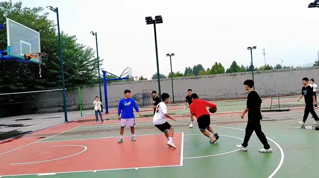 假期的篮球场上也有不少学生。“以这种形式过国庆节太有意义了!不仅锻炼了身体,还认识了很多有共同兴趣的新朋友”。2022级新生丁有方说:“今年是我在黄科院度过的第一个国庆节,原本会想着假期枯燥无味,没想到在辅导员的带领下还有这么丰富的活动,感觉很开心。”在学校篮球场上,艺体学部2022级运动康复专业辅导员李成正和学生开展趣味篮球赛。赛场上,队员们热情高涨,你来我往,互有攻守,精彩的攻防转换场面不断出现,在友好的气氛中充分展示着自我,队员们精湛的球技不时赢得围观学生阵阵喝彩和掌声。