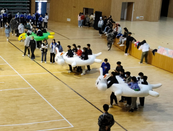 “度国庆,迎盛会”趣味体育比赛活动在学校一号体育馆举行,比赛活动主要有“彩虹伞”“毛毛虫”和“龟兔赛跑”三个项目,现场气氛热烈,比赛十分精彩,学生们热情饱满,以昂扬的精神面貌参与其中。参加活动的同学们纷纷表示,本次活动让我们真正体会到了运动的快乐,在接下的学习生活中,我们会持续加强体育锻炼,打造强健体魄,以积极阳光向上的新面貌、新风采迎接党的二十大胜利召开。2022级广播电视编导专业唐瑄瑶由衷地说:“这次运动会很有意思,这些项目是我第一次玩,不仅锻炼了身体,还拉近了同学们之间的距离,丰富了我的假期生活,在寒冷的深秋让我感觉很温暖。”