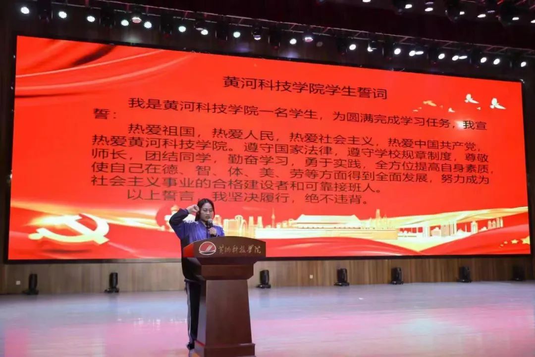 2022级国际学院物流管理专业新生李思怡表示,作为新生,我从誓词中感受到了动力,对未来的大学生活充满了希望。在接下来的大学生活中,我将严格按照誓词中的要求,开拓创新,一步步走向成熟、自信、自立、自强,成为有知识、有抱负、肯努力、能奉献的“四有”青年。2022级康复治疗技术专业新生李响说,纵使前路漫漫,仍要脚踏实地;纵使荆棘载途,仍要踔厉奋发。2022级商学院大数据会计专业学生朱迪说:“作为一名新生,我必将秉承‘开拓、拼搏、实干、奉献’的黄科院精神,珍惜韶华,逐梦青春,用奋斗书写大学生活的壮美画卷,成为堪当民族复兴重任的时代新人。”