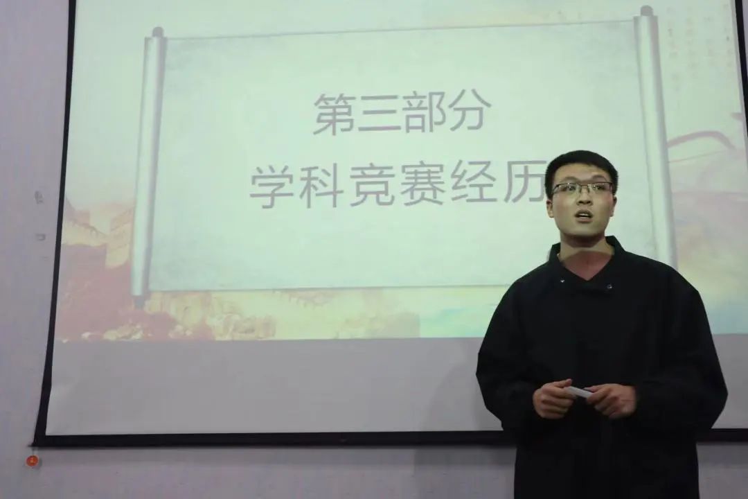 活动以“不负韶华,逐梦青春”为主题,王福星从学习领域展示、学科竞赛经历和文学创作经历三个方面与同学们进行了分享与交流。