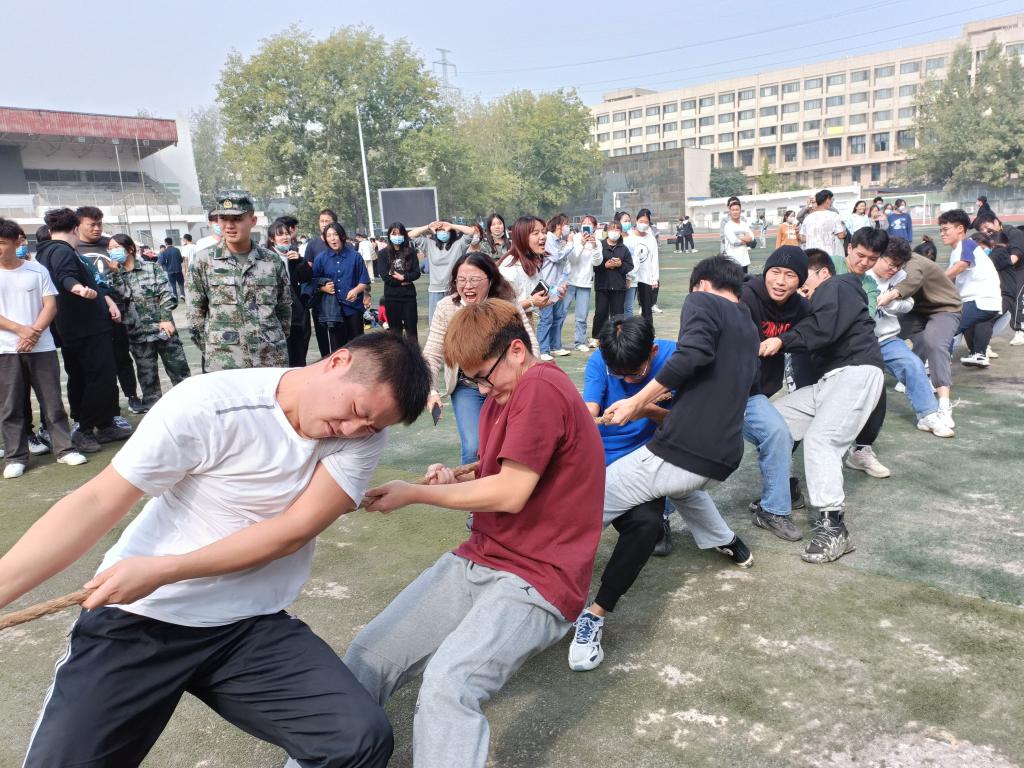 为喜迎二十大,丰富学生周末文化生活,10月15日,工学部在学校田径运动场举办“喜迎二十大 奋进新征程 ”拔河比赛。比赛以学管中心为单位举行,大一、大二学生参与。 比赛之前,裁判老师一遍遍耐心讲解、示范拔河比赛过程中的技巧,各班级参赛队员个个鼓足了干劲。同学们个个摩拳擦掌,等待着比赛开始的那一刻一声哨响!