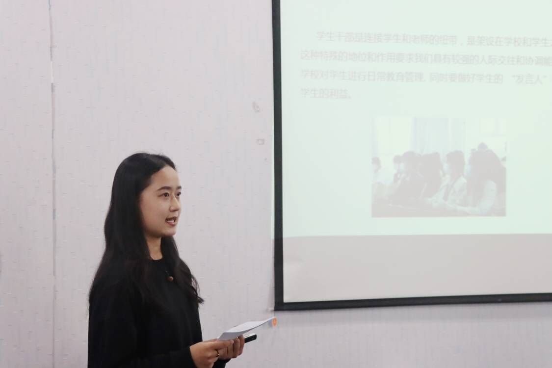 活动最后,翟利强进行总结。他讲到,学生干部是学生中的中坚力量,是学生和学校进行沟通、交流的桥梁和纽带,是学校学生管理工作的一支重要力量。希望各位学生干部在今后的工作生活中进一步明确自己的职责,增强责任感,严于律己、以身作则、敢于担当、勇于奉献,急同学之所急,帮同学之所需,满腔热情为同学和集体服务。