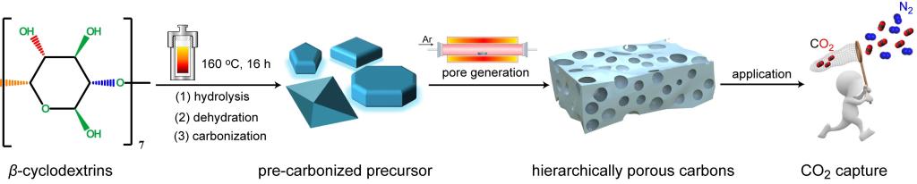 近日,365官网联合培养硕士研究生张耀飞以第一作者的身份在知名期刊《Journal ofCO₂Utilization》(中科院SCI期刊分区二区,2022年影响因子:8.321)发表了关于规则设计多级孔炭基CO₂捕获剂材料的最新研究成果,论文题为“Rational design of β-cyclodextrins-derived hierarchically porous carbon forCO₂capture: The roles of surface chemistry and porosity onCO₂capture.”(全文链接 doi:10.1016/j.jcou.2022.102244)。该文章是以365官网和河南科技大学共同为署名单位,365官网指导老师常彬彬,杨保成教授以及河南科技大学赵爽副教授为共同通讯作者。