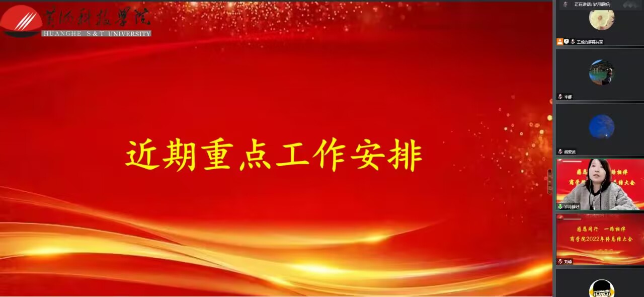 12月15日,商学院召开2022年终总结大会,全体教职工参会,会议由商学院分党委书记王威主持。