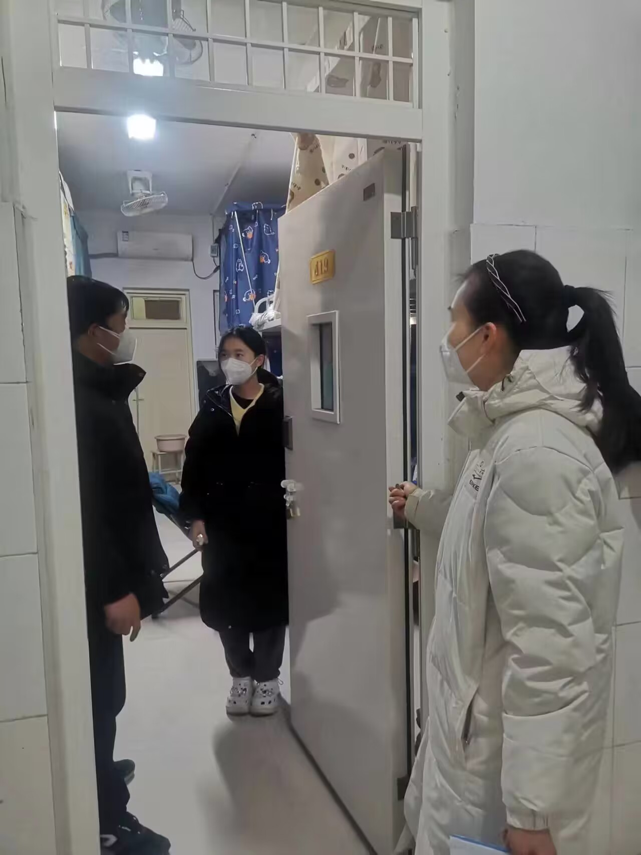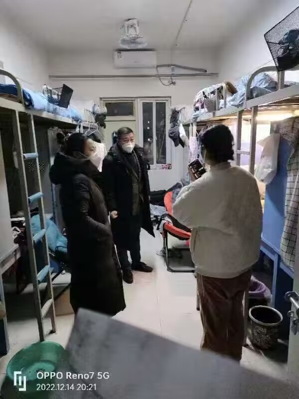 12月14日,为做好留校考研备考学生教育管理工作,在艺体学部分党委书记白云庆指导下,学部党政学工办副主任肖红廷带领辅导员到宿舍看望慰问在校考研复习的学生。