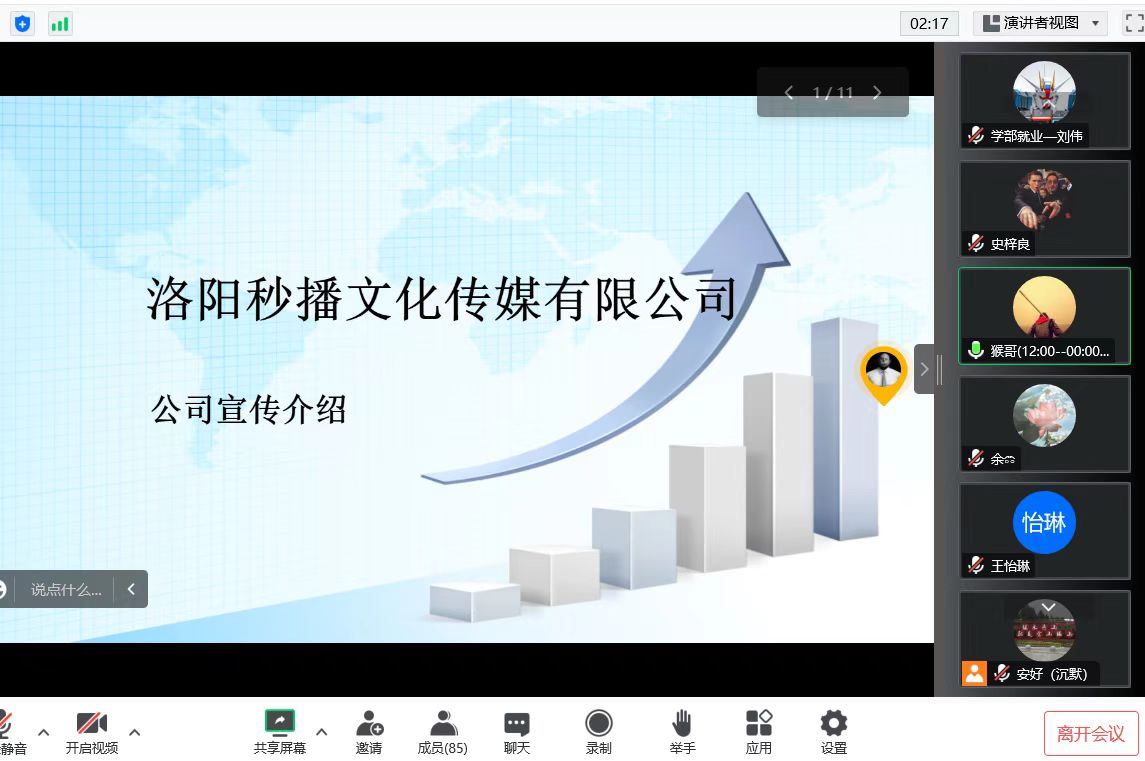 1月9日,艺体学部联合洛阳秒播文化传媒有限公司开展线上就业招聘专场宣讲会。秒播文化执行总监徐宇主讲,艺体学部就业专员刘伟、播音科教中心毕业班辅导员王山威及2023届播音专业毕业生参加宣讲会。