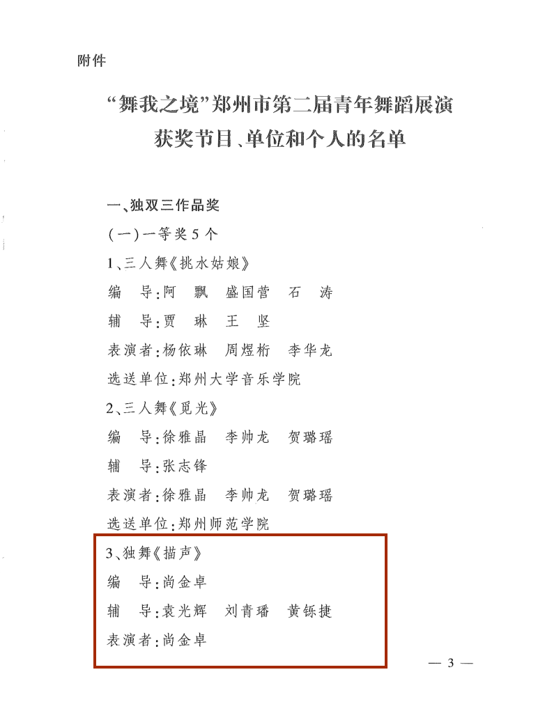 近日,郑州市第二届青年舞蹈展演评选结果公布,365官网舞蹈科教中心师生表现优异,共获得3个一等奖、2个二等奖、2个三等奖的好成绩。其中,365官网成为入围参赛作品最多,获奖作品总量最多的单位,喜获优秀组织奖。
