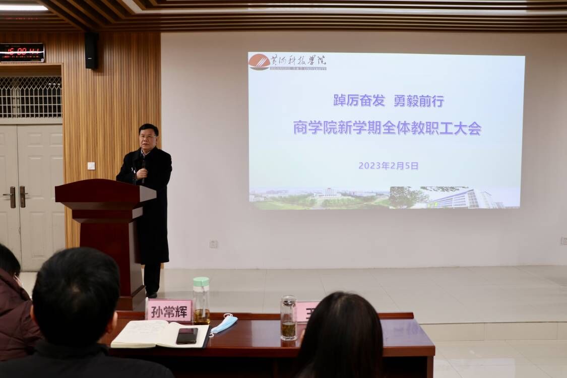 2月5日,商学院召开新学期全体教职工大会,商学院院长喻新安,分党委书记王威以及全体教职工参加会议。