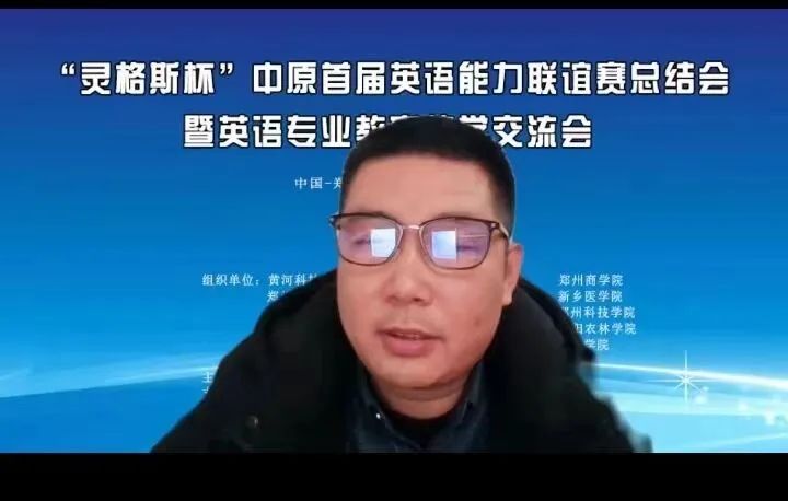 2月26日,外国语学院院长助理张伟锋应邀参加“灵格斯杯”中原首届英语能力联谊赛交流座谈会,并作主题发言。