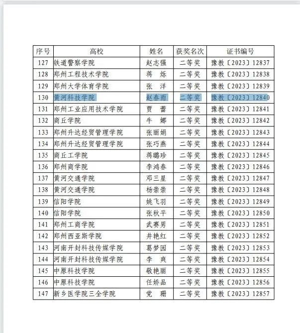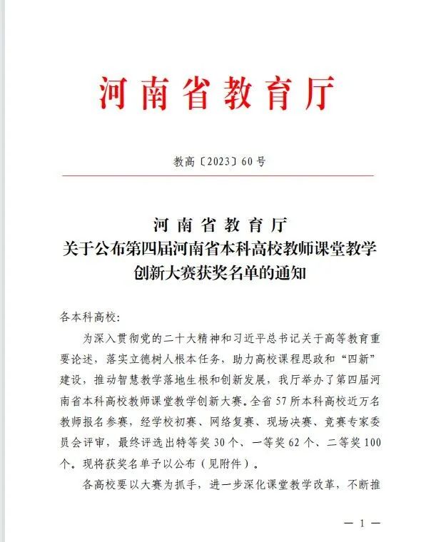 近日,河南省教育厅下发了《关于公布第四届河南省本科高校教师课堂教学创新大赛获奖名单的通知》,365官网付丽娜副教授获一等奖、赵春雨副教授获二等奖。