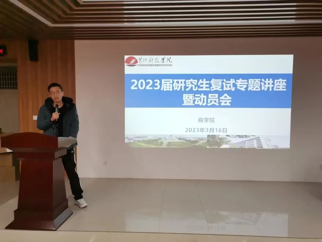 3月16日,商学院召开2023届研究生复试专题讲座暨动员会,商学院副院长孙常辉,各科教中心主任、升学导师及在校考生参加活动。教学科研办常务副主任温海啸主持。
