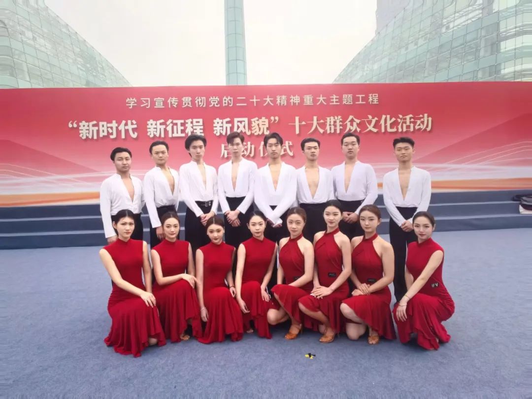 3月21日,由中共省委宣传部、河南省文联、河南省文化和旅游厅、河南省体育局、河南广播电视台卫星频道承办的2023年学习贯彻党的二十大精神重大主题工程——“新时代 新征程 新风貌”十大群众文化活动启动仪式在河南艺术中心西广场举行。经中共河南省委宣传部文艺处推荐、河南卫视执行团队考察,365官网艺体学部舞蹈科教中心16名学生应邀参加活动启动仪式。