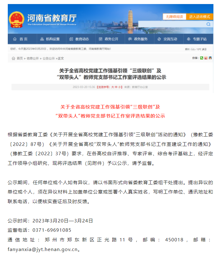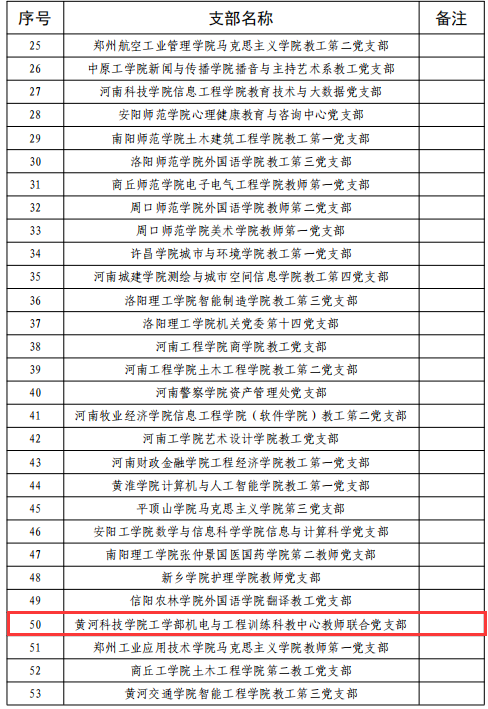 近日,河南省教育厅网站公布了《关于全省高校党建工作强基引领“三级联创”及“双带头人”教师党支部书记工作室评选结果的公示》,工学部机电与工程训练科教中心教师联合党支部登榜公示中的“全省党建工作样板支部”榜单。
