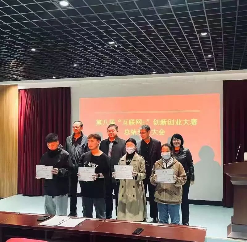 与会领导对获奖师生进行颁奖表彰。获奖学生代表常旭给大家分享了自己的备赛过程和通过参加大赛取得的收获,并鼓励同学们一定积极参加,用心准备,在比赛中成长和提高。获奖教师代表付丽娜介绍了如何进行赛前准备及注意事项,鼓励更多的学生报名参加“互联网+”创新创业大赛,展现自我、拓展素质、提升能力,并表态今后会一如既往、全身心地投入到大学生创新创业教育的指导工作中,通过实践的积累,与学生共同成长、进步。