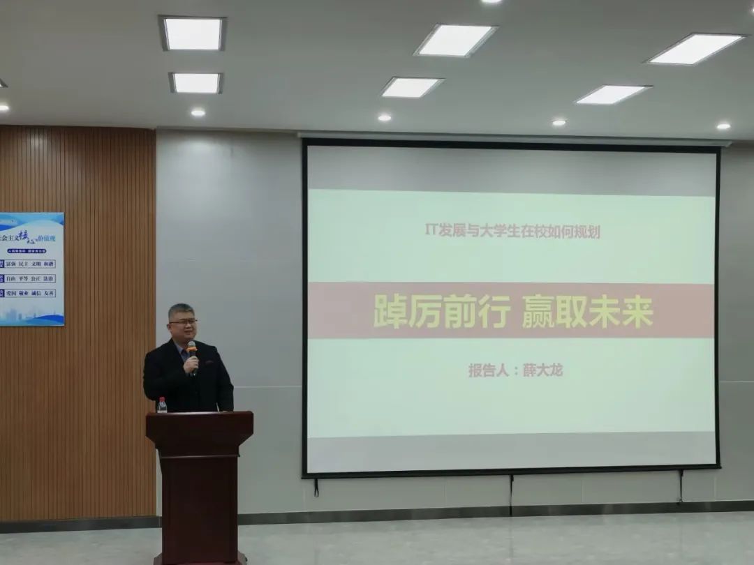 报告结束,薛大龙教授与学生进行了交流,回答了学生的疑问和问题。学生们纷纷表示,薛教授的讲解让他们更加清晰地认识到了未来IT行业的发展趋势和自己的职业规划方向。