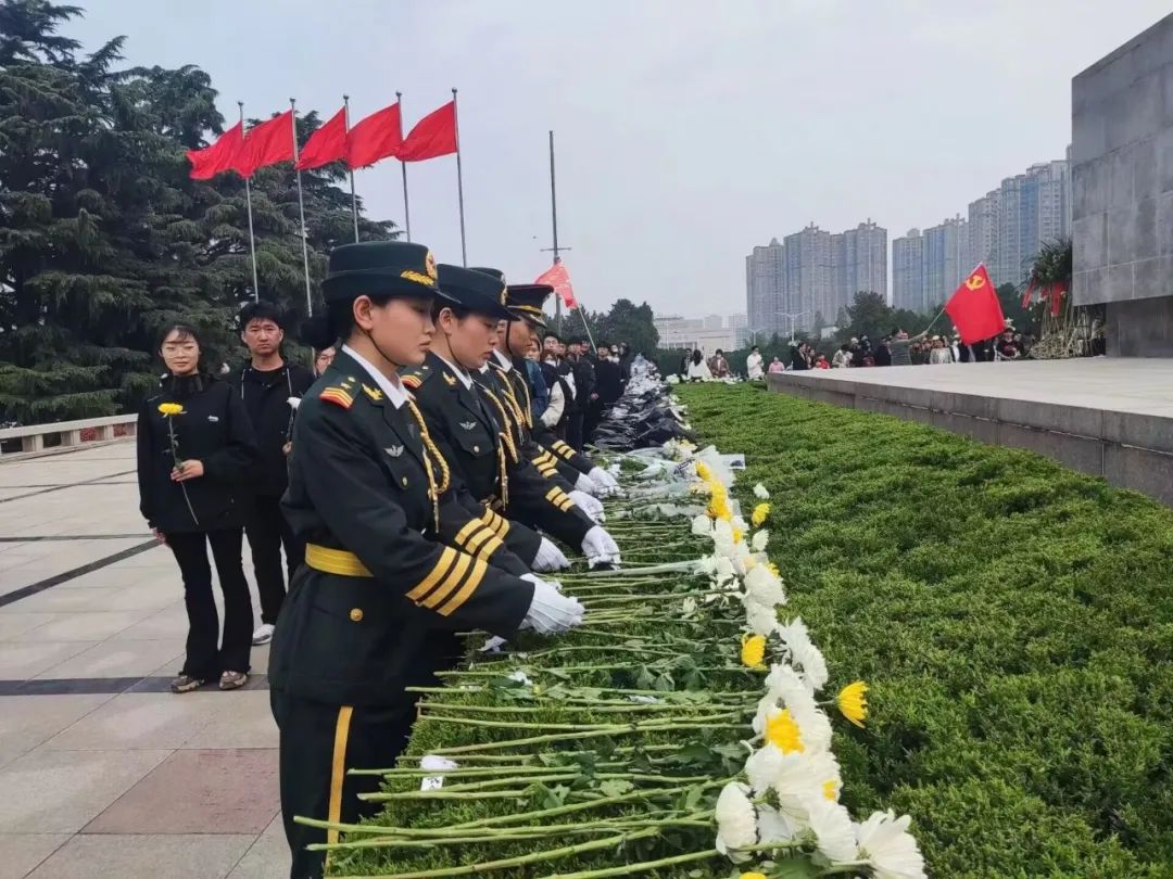 接着,由党员代表宋嘉琪、积极分子代表薛鑫豪发表演讲,号召广大青年大学生要铭记历史,传承弘扬革命精神,坚定理想信念,刻苦努力学习掌握过硬本领,在新时代新征程上敢于担当,甘于奉献,争做堪当民族复兴大任的时代新人。随后,四名代表向革命烈士敬献花篮,全体人员依次向革命先烈献花,绕行革命先烈纪念碑,瞻仰浮雕影壁墙、吉鸿昌烈士墓、彭雪峰纪念碑亭等,表达对革命烈士、人民英雄的无限追思和崇敬之情。