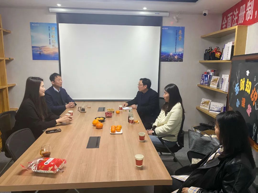 为进一步加强校企深度融合,推进学院拓岗促就业专项行动走深走实。近日,国际学院金融学教研室主任罗国立一行4人赴东方财富证券郑州桐柏路营业部进行调研,桐柏路营业部总经理张玉彬热情接待。