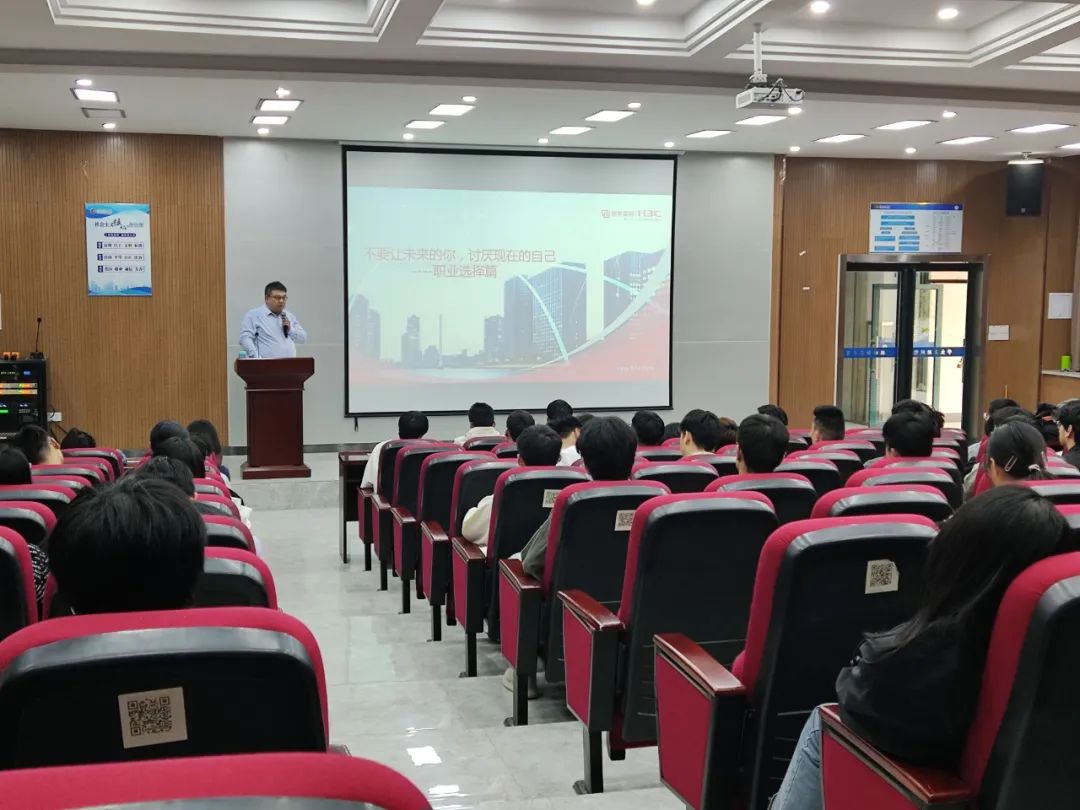 韩利强以《不要让未来的你 讨厌现在的自己》为题,从工业4.0讲起,结合很多生活中的例子,让同学们明白了数字产业化与产业数字化的区别和联系。他通过介绍两个计算机专业学生不同的大学奋斗经历,启发同学们思考自己的未来如何规划。他通过职业规划三叶草模型,即自己的兴趣、价值、能力,详细讲解了如何进行职业规划。他强调,在进行职业规划时,要优先考虑高增长行业;放过大厂,关注民企;用一技之长,抵抗学历不足;在一线城市奋斗,在城市网安居;尽早实习,别等招聘面试。他鼓励大家勇于参加各项比赛提高自己的专业技能、丰富自己的项目经历,为将来的毕业就业打好基础。
