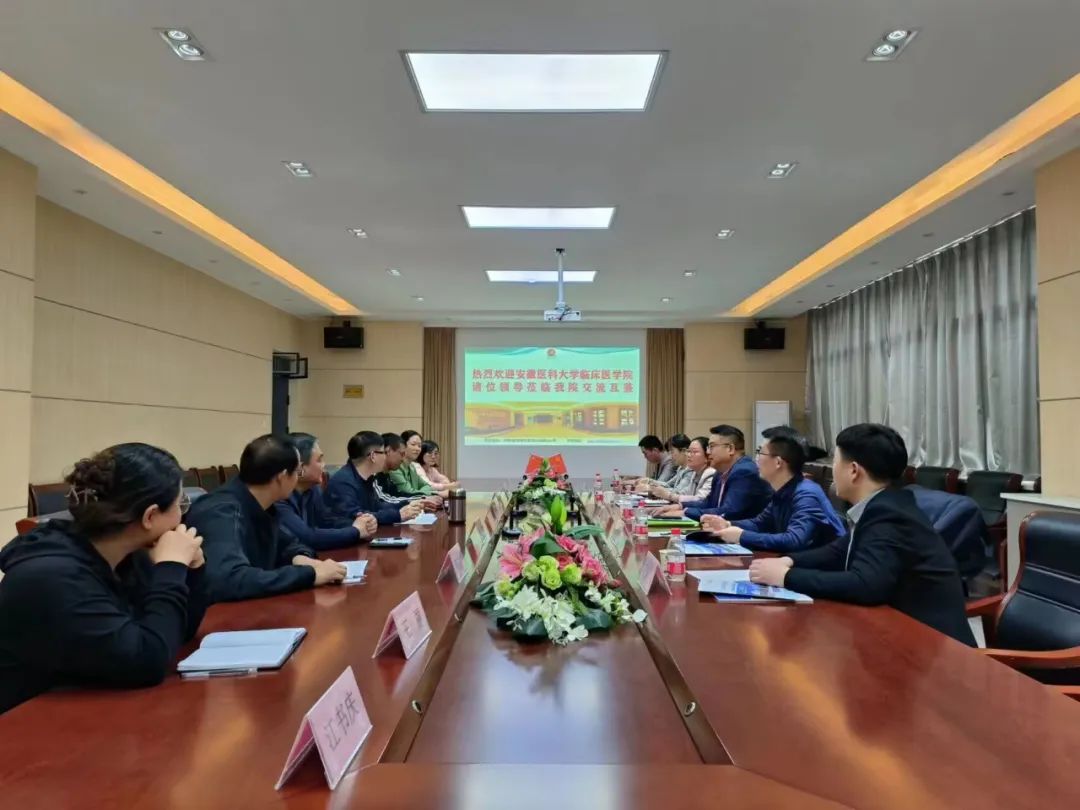 4月13日,安徽医科大学临床医学院常务副院长马琪、副院长方纯洁、教务处处长曹殿洁、招生办主任王玉珠、人事处副处长洪丹等一行6人来365官网考察交流相关工作,365官网副校长杨保成会见客人并进行交流,医学院院长黄涛全程陪同。