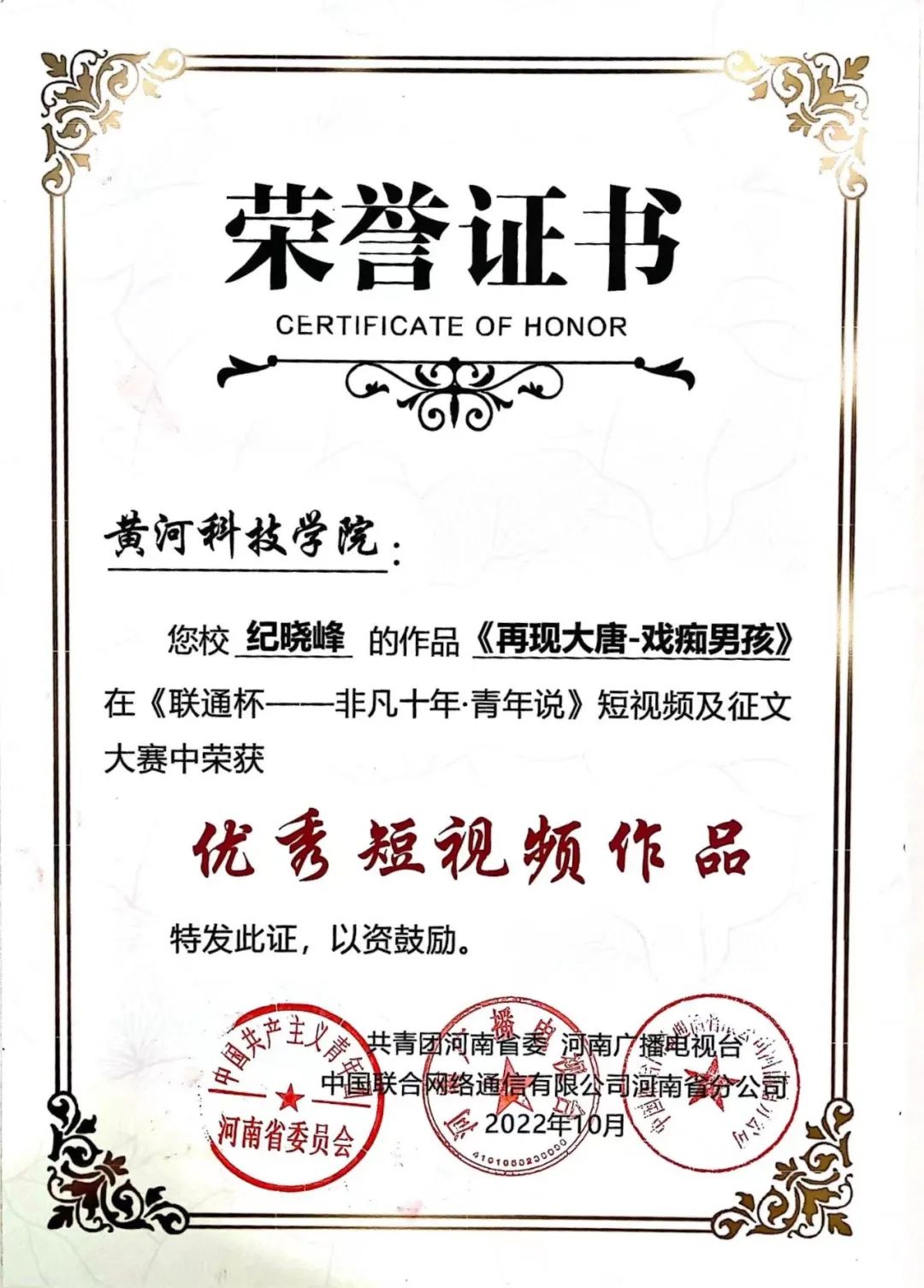 近日,由共青团河南省委、河南广播电视台、中国联合网络通信有限公司河南省分公司联合主办的“联通杯--非凡十年·青年说”活动公布结果,365官网2个作品荣获“优秀短视频作品”、1个作品荣获“优秀展演作品”,学校荣获“优秀组织单位”。