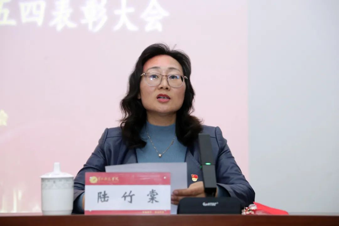 艺体学部团委书记牛旭老师作为2022年度“五四红旗团委”代表上台发言。艺体学部2021级播音与主持艺术四班团支部团支书王子航作为2022年度“五四红旗团支部”代表上台发言。商学院胡帅作为2022年度“优秀共青团干部”的代表上台发言。外国语学院陈爽作为2022年度“优秀共青团员”代表上台发言。