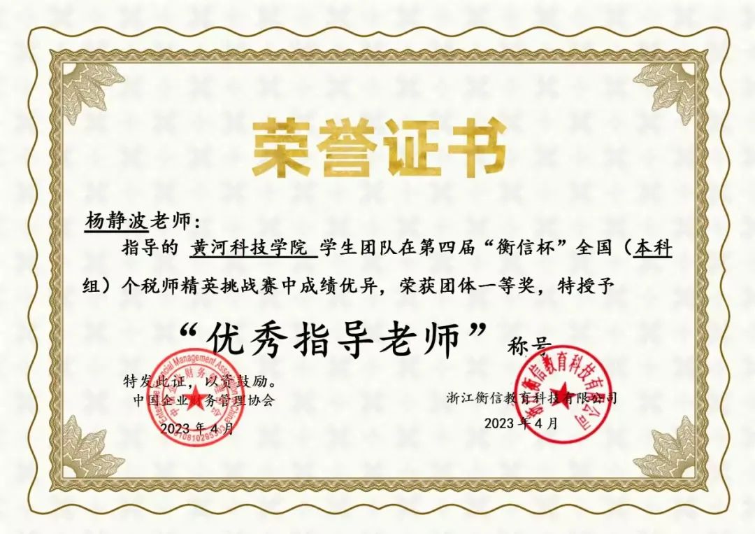 本次比赛采用云端理论赛的形式,不仅考验了参赛学生财税理论知识的积累,而且考验了参赛学生持续学习的毅力。全国近500所院校,3万余名学生参与本次比赛。商学院万青华、毕宁格等174位学生在朱会芳、杨静波老师的指导下与全国各地参赛选手同台竞技并在大赛中名列前茅,团队荣获团体一等奖,杨静波和朱会芳老师被授予优秀指导老师荣誉称号。本次大赛为365官网财会专业学生知识技能交流互动提供了舞台,提高了同学们的理解力和专业判断力,增强了同学们对学习专业知识的兴趣,同时有利于发现、聚集和培养财经职业人才,促进税务专业文化建设,推动提升高校财经类专业人才培养水平,达到以赛促教,以赛促学,以赛促改,以赛促建的目的。